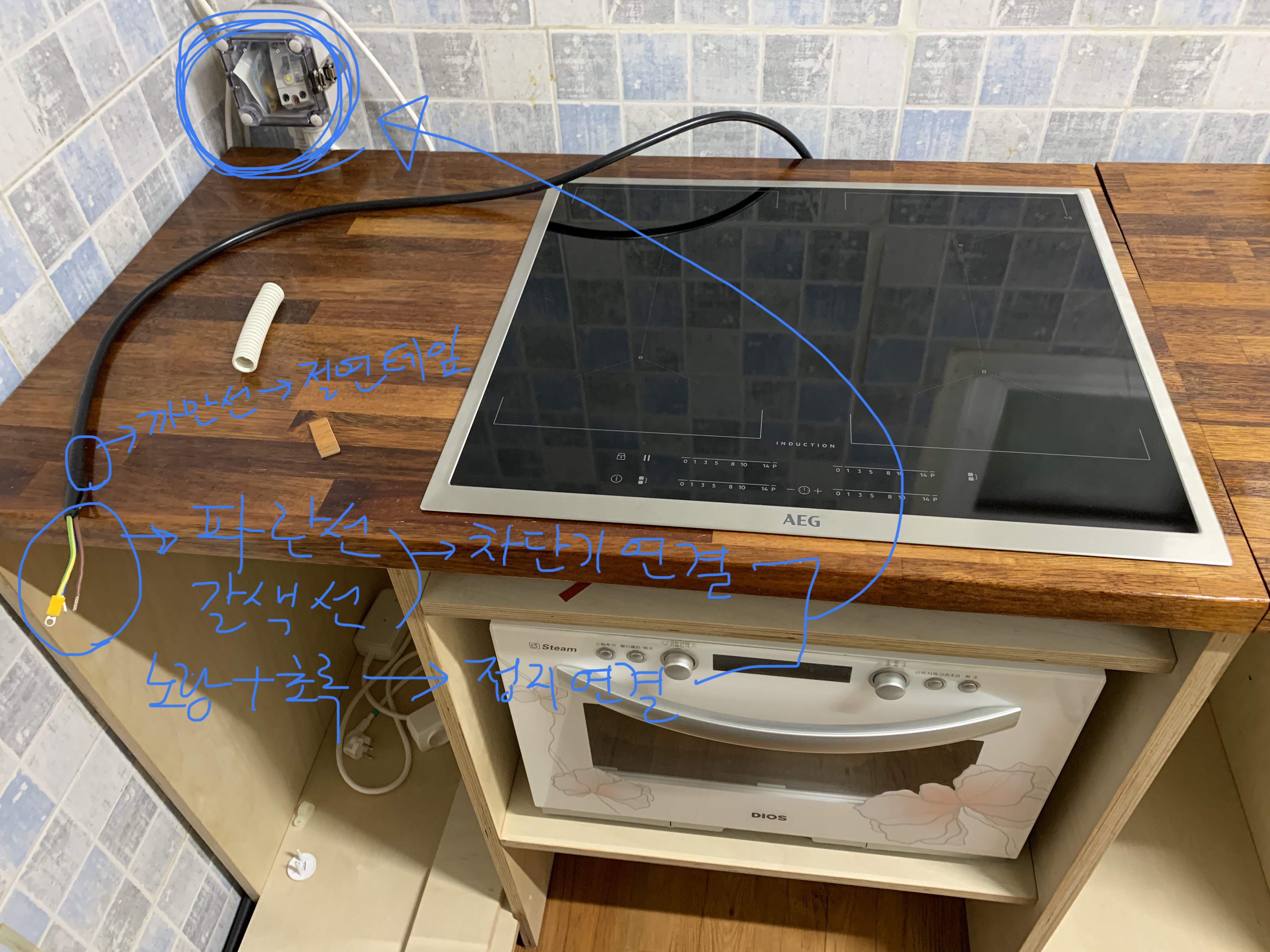 다만 국내제품처럼 플러그만 꼽아 쓸 수는 없는 거라, 약간의 전기공사를 해야했다.