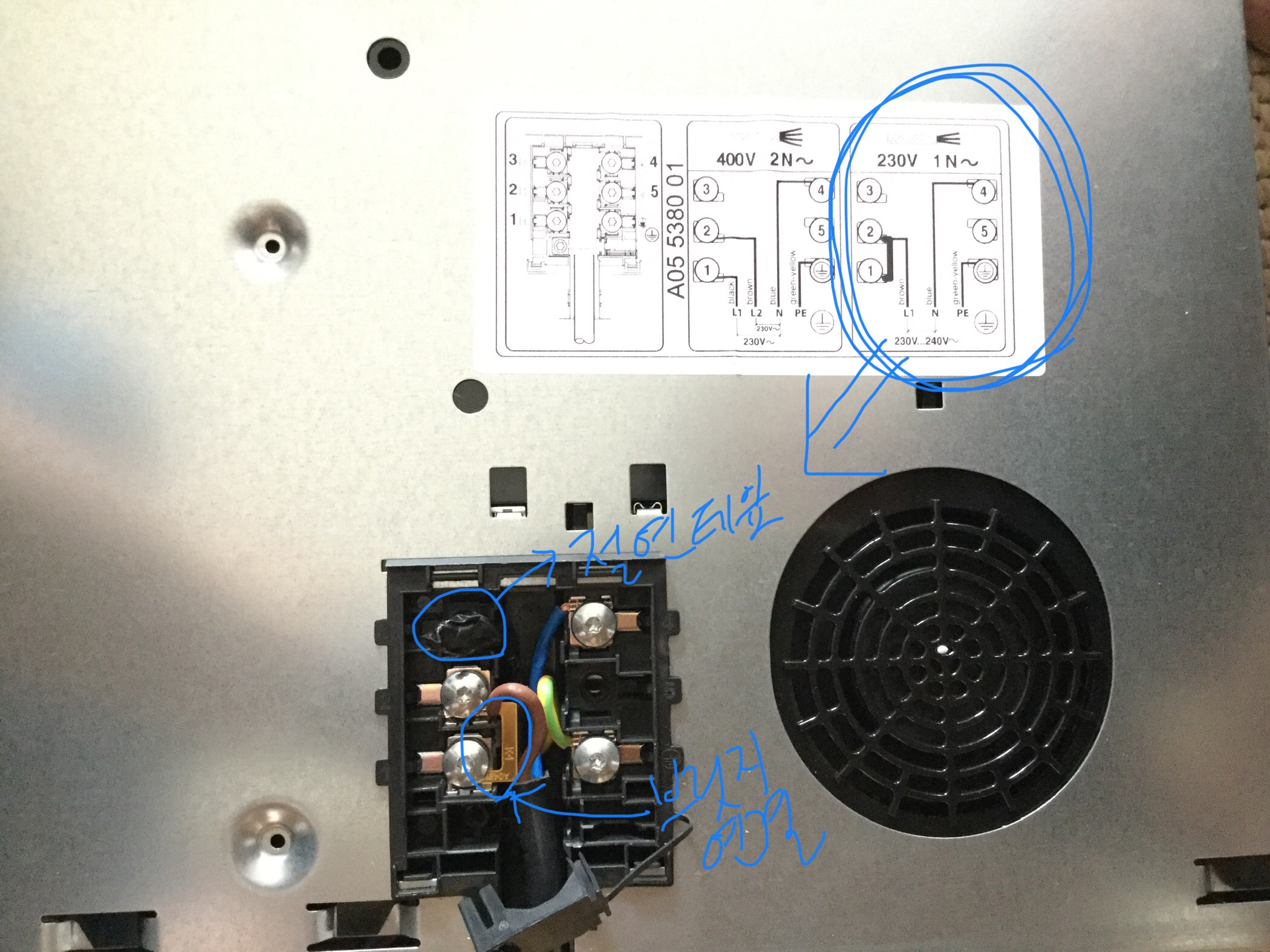 이젠 독일의 400볼트에 맞춰 나온것을 우리 나라에서 쓸 220볼트로 세팅할 차례~
