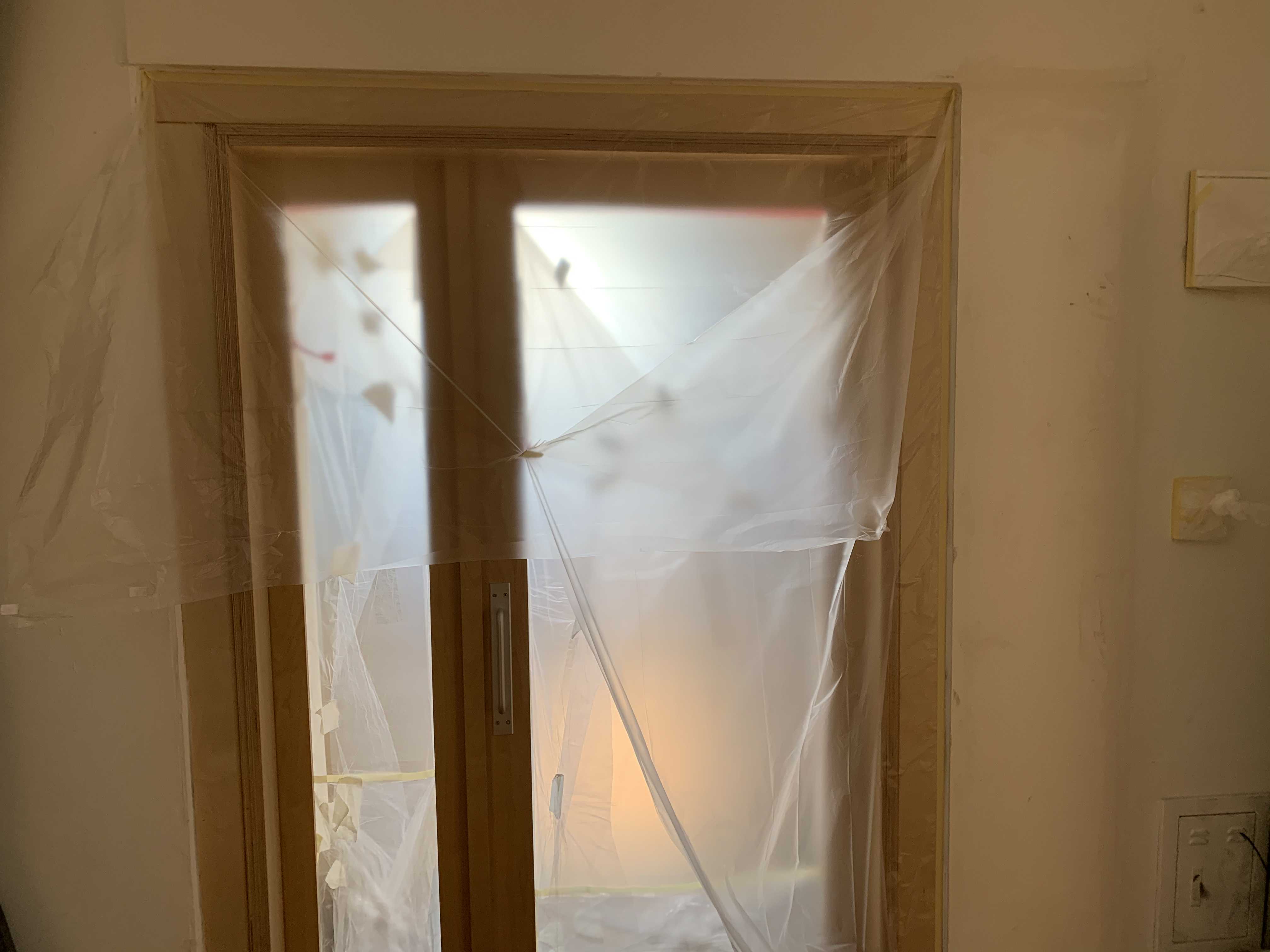 문들을 다 달아놓고 (유리 도착전이라 일단 비닐로 먼지만 막아만 두고),