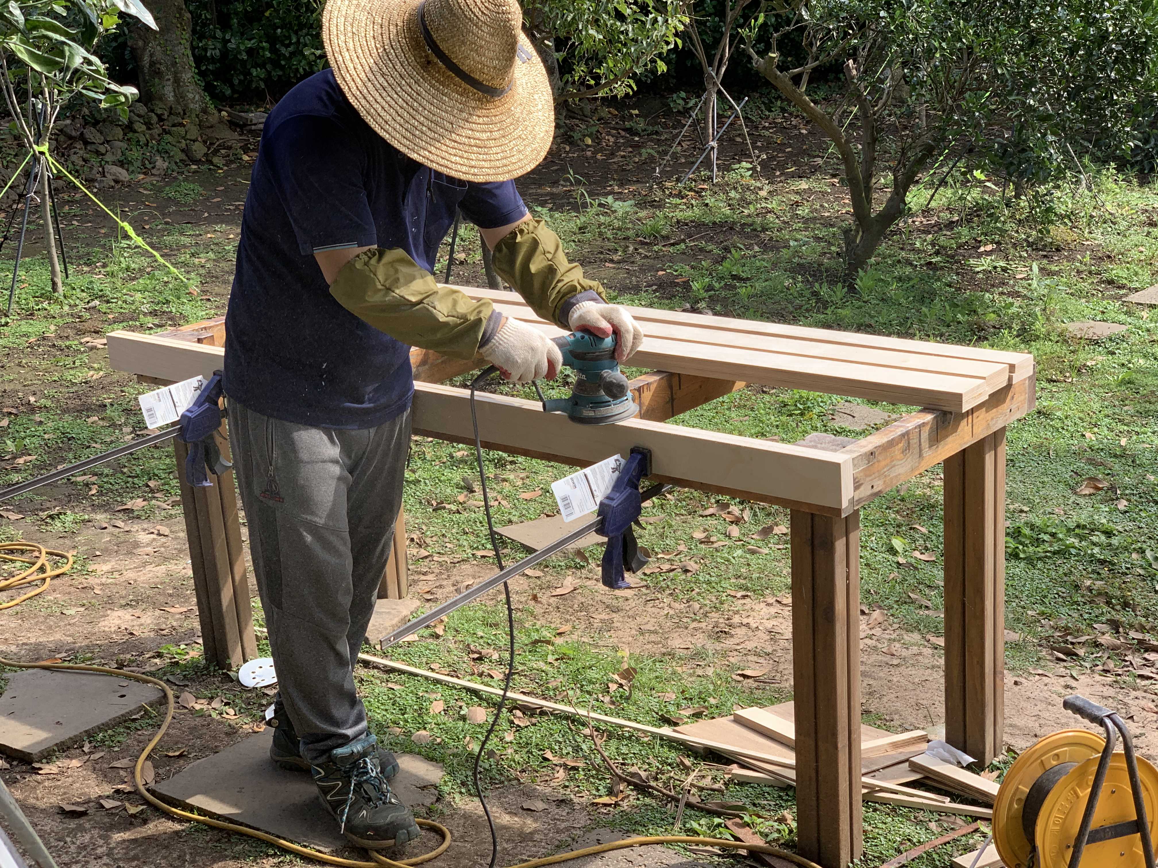 변변한 공구도 없이 (테이블쏘는 커녕 조기대도 없이 마당에서 원형톱으로만 자르고 다듬고 붙이고 해야했던...),