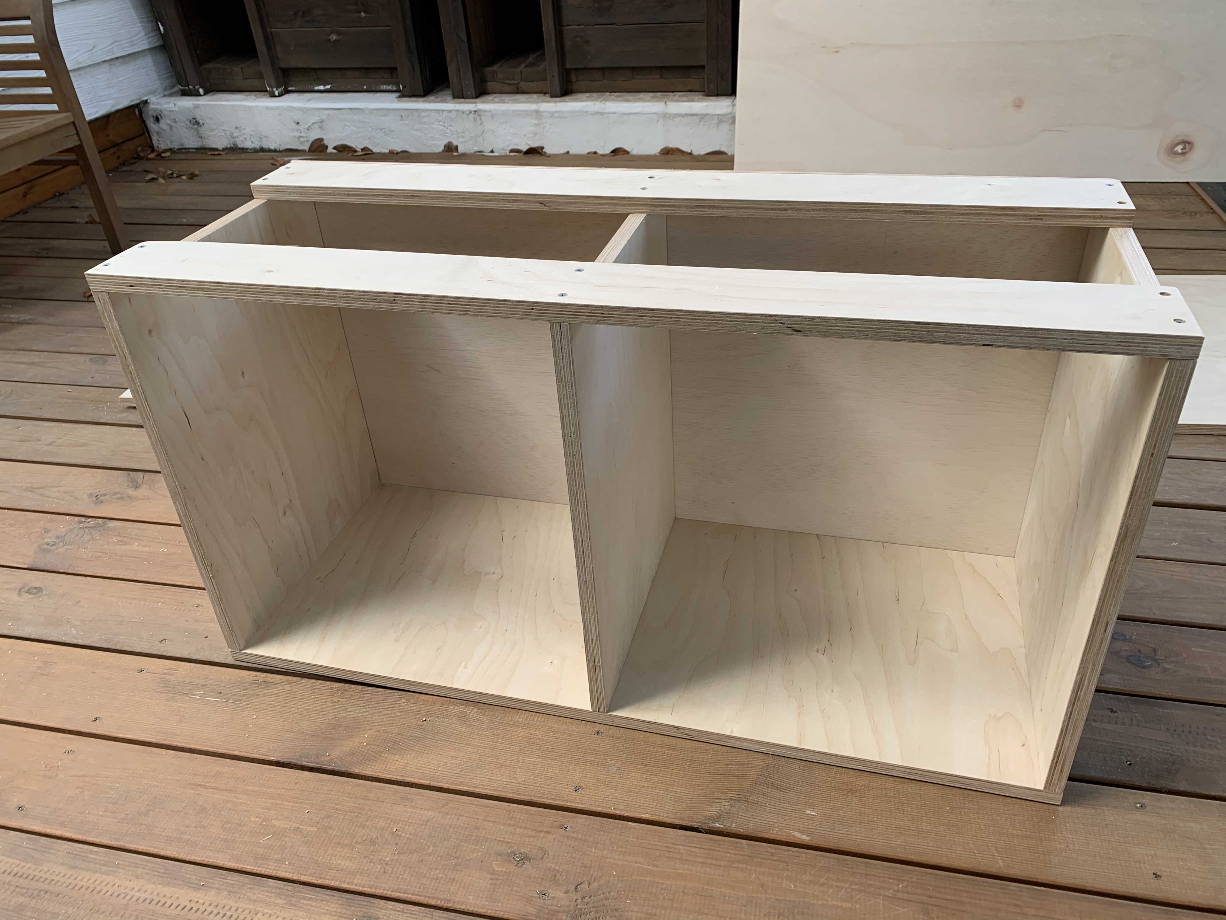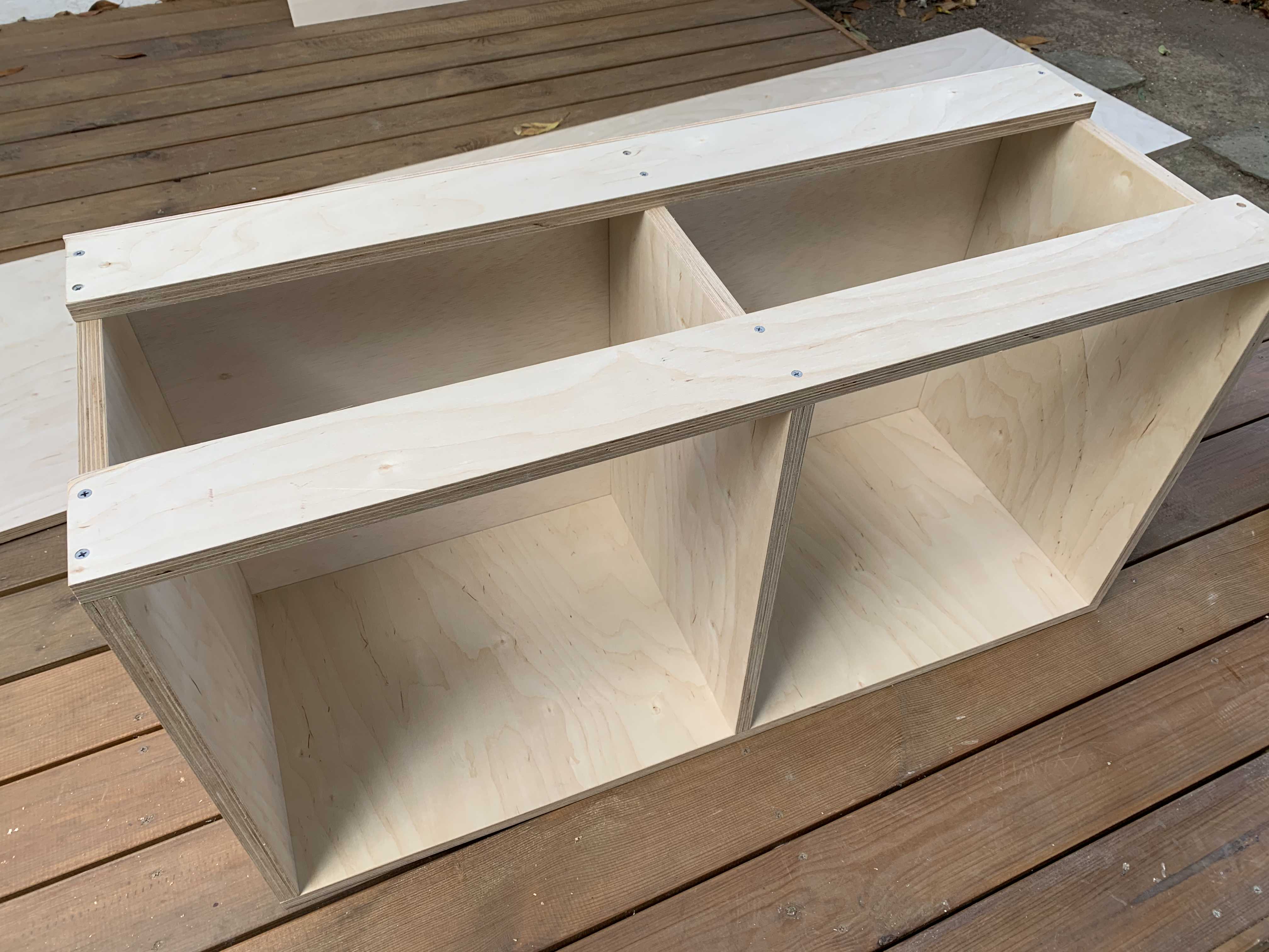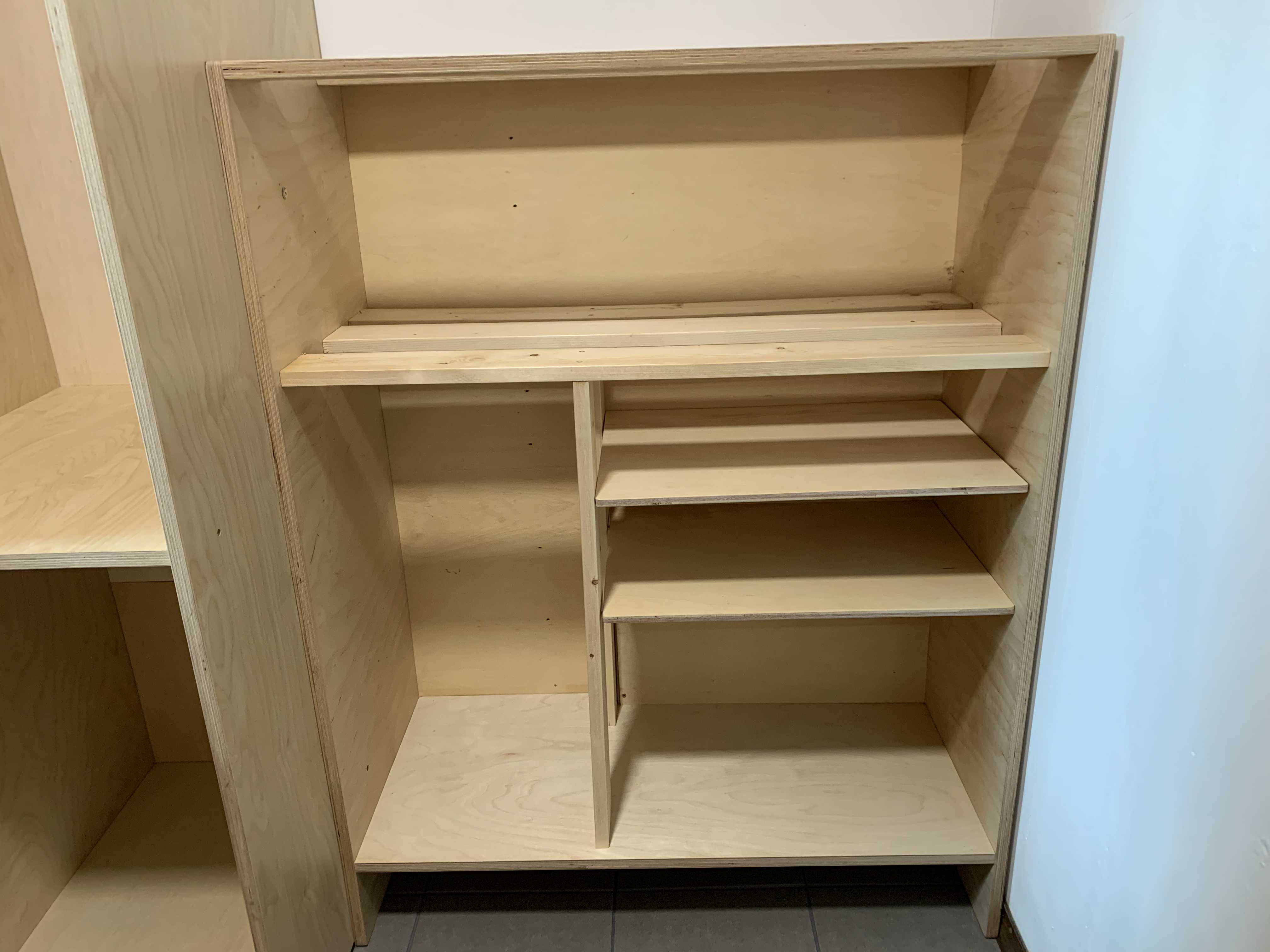 내부에 칸을 나눠주는 (움직일 수 있는) 선반들만 이제까지 작업들에서 나온 자투리 나무들을 재활용했다.