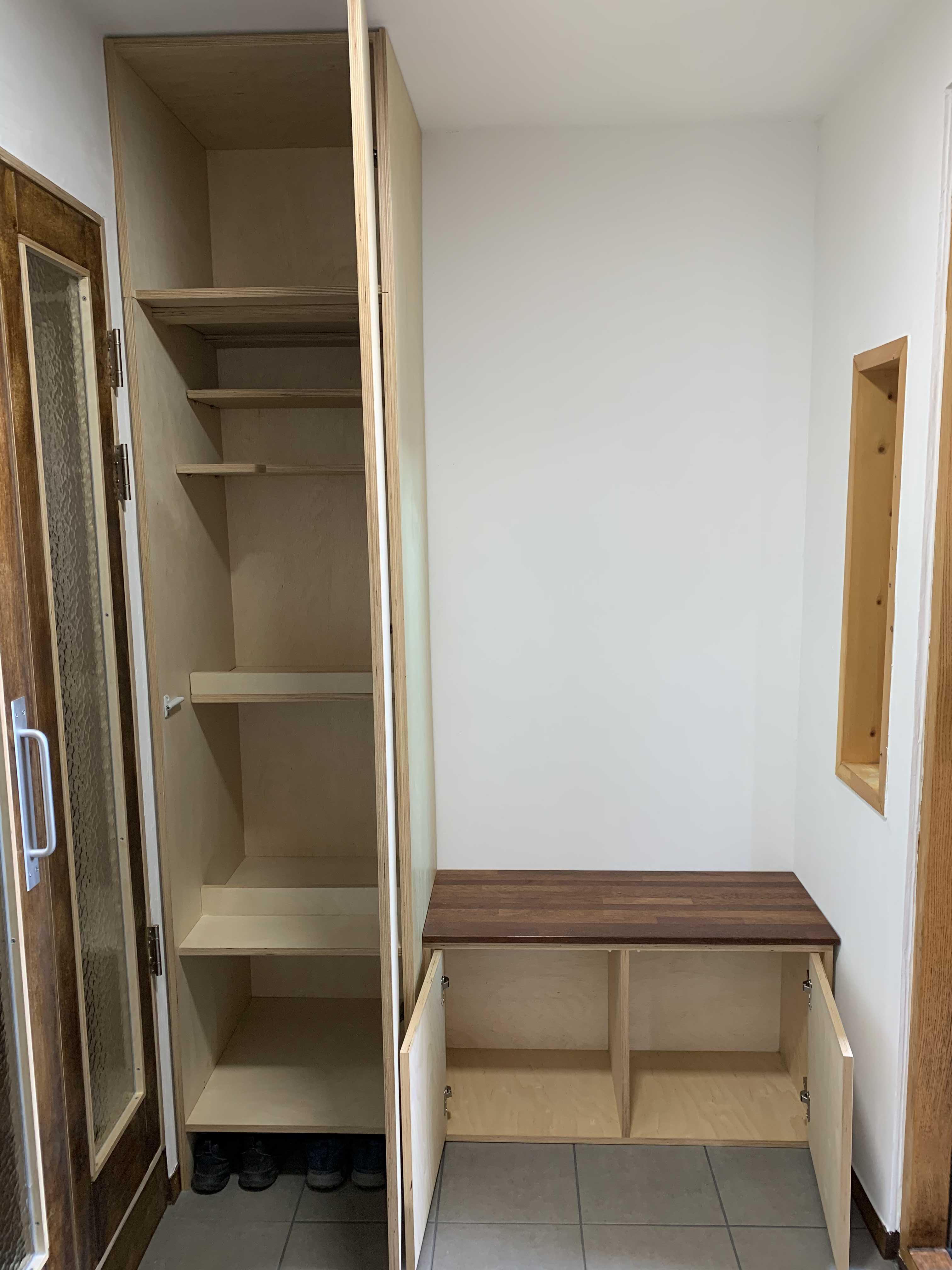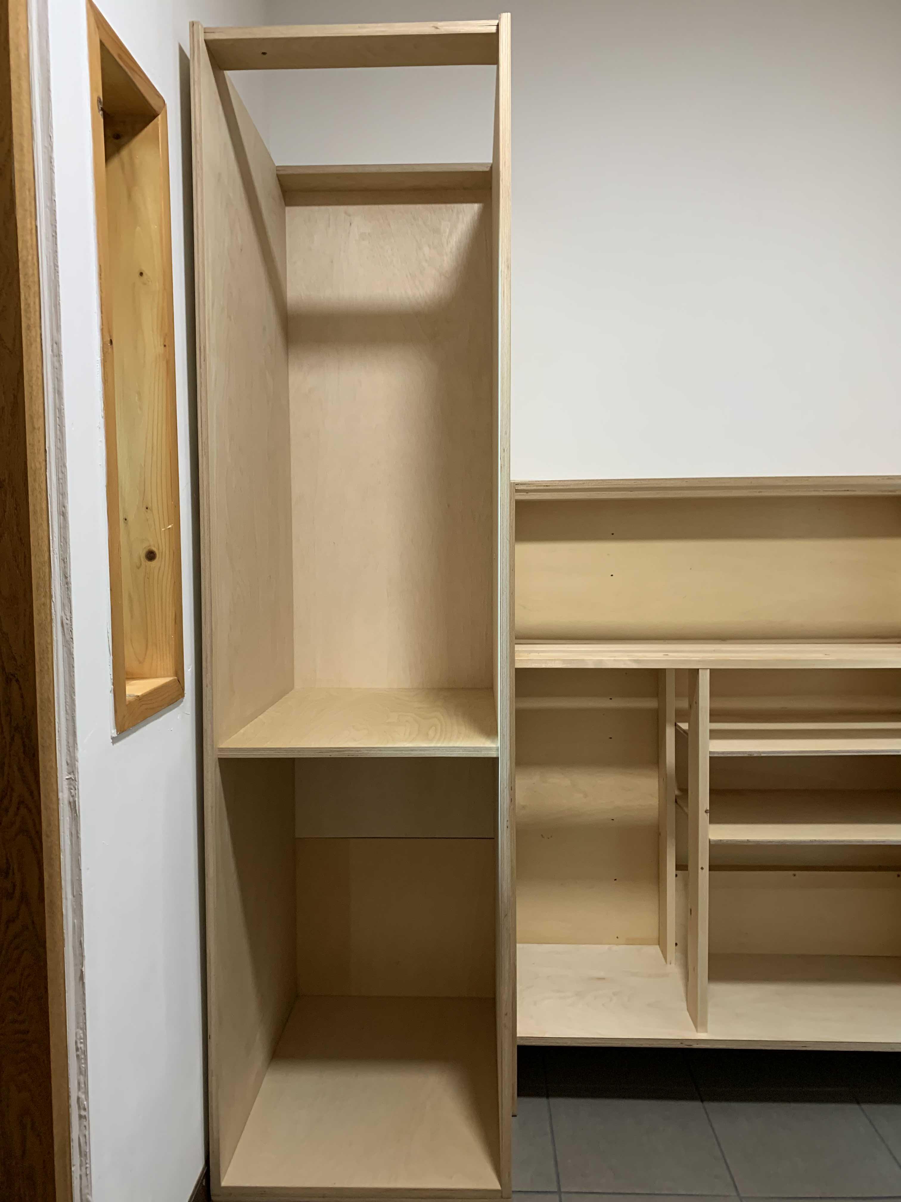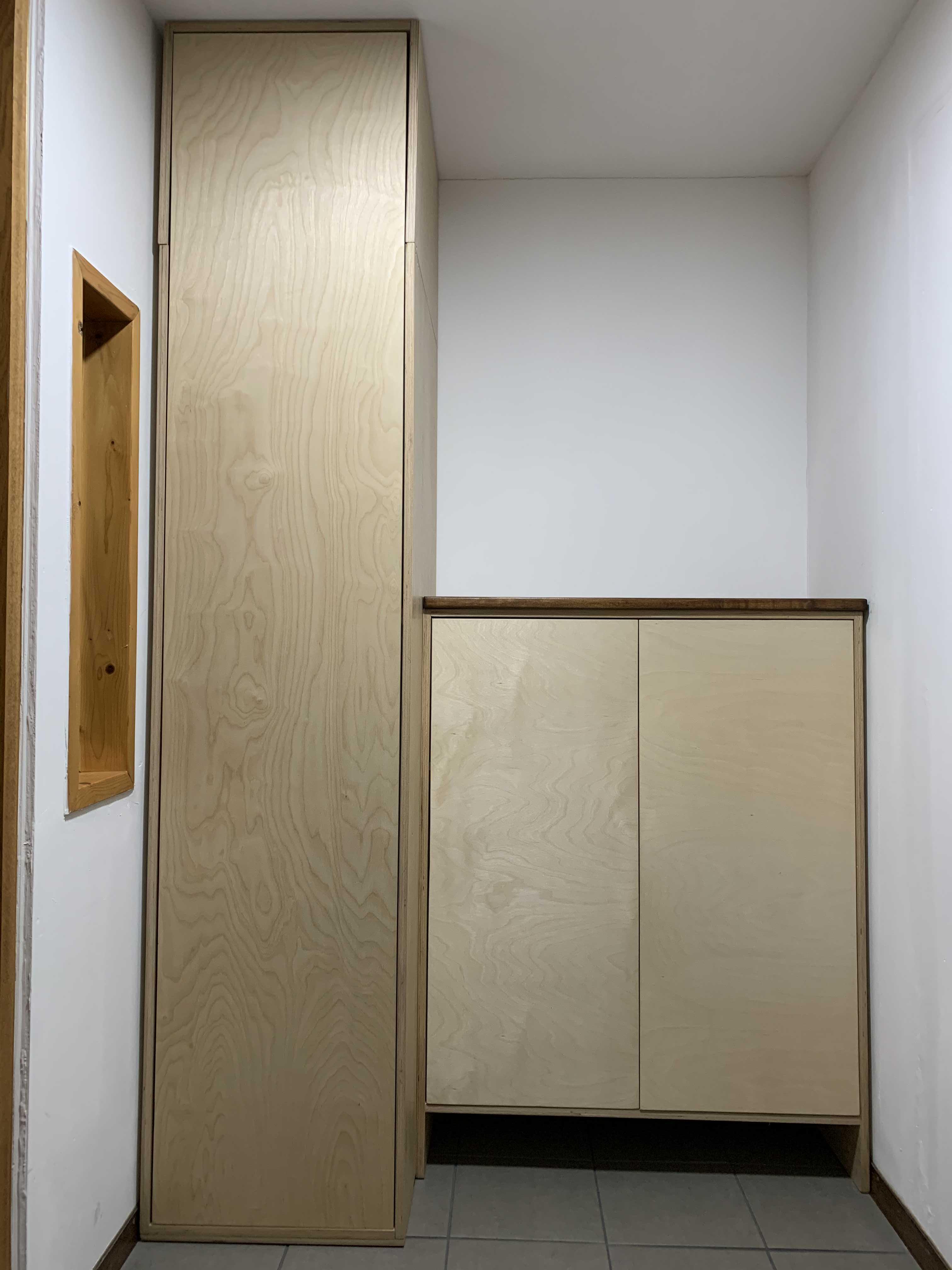 저쪽에 작업복장과 의자장을 만들었다면, 이쪽엔 수납장과 신발장을 만들었다.