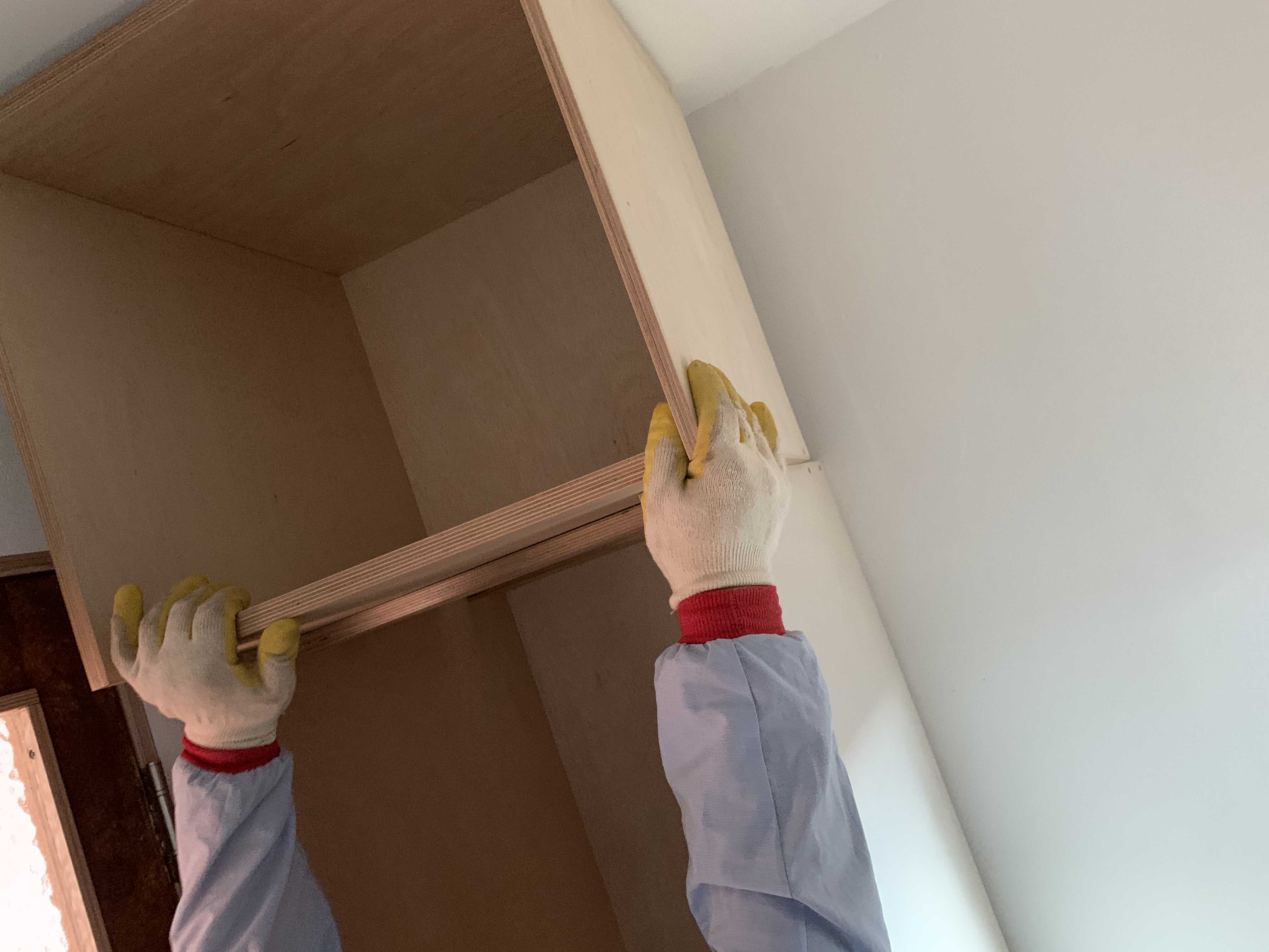 신발장 옆에 수납장 아래부분을 먼저 넣어 자리를 잡고,